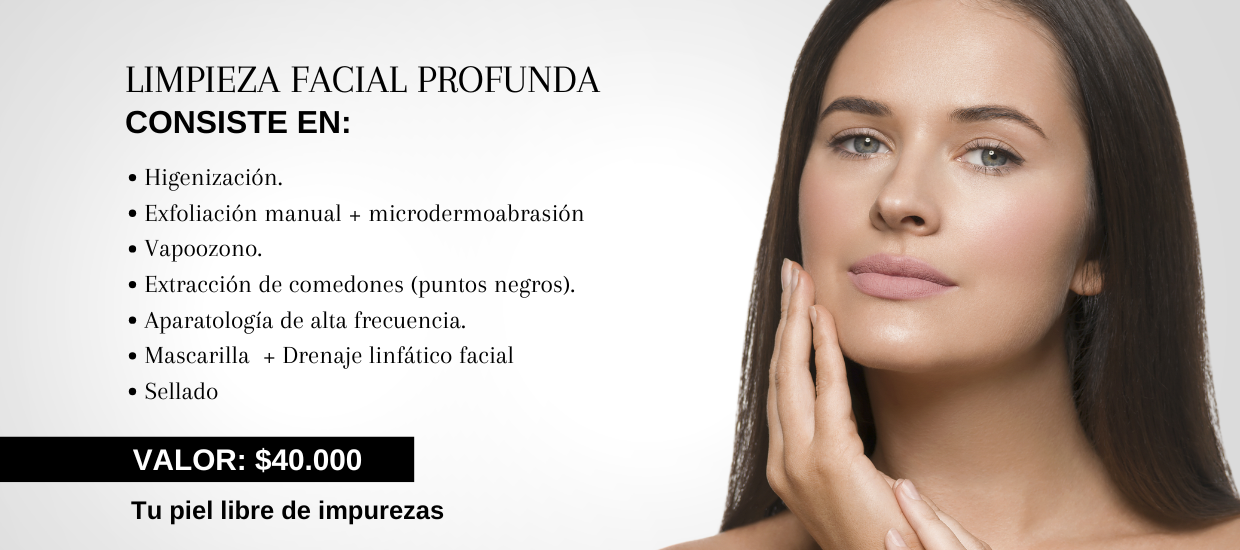 La Limpieza Facial Profunda, es un tratamiento profesional cosmetológico, en el cual se libera la piel de contaminantes, células queratinizadas e impurezas, evitando la propagación de bacterias en nuestra piel. Logrando una piel oxigenada, libre de impurezas, radiante, tersa, fresca e hidratada.
